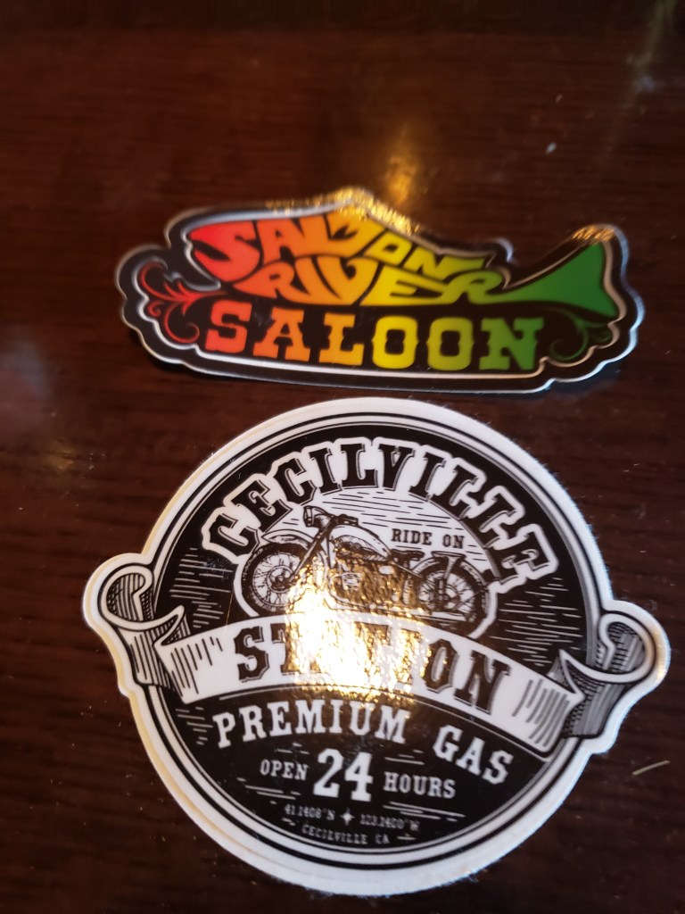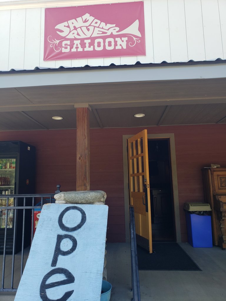 A cardboard sign on the modern pp read. Cash or debit card only. No credit cards. A lady and a kid are running around in a side by side and they come over and she stops and says. I’ll have my husband turn on the pump and then states what’s on the cardboard sign. Sure, no problem. I hear the pump turn on and I start to pump… but very little is coming out and then none. I put the nozzle back and start to walk over to the building which is “The Salmon River Saloon” the door is locked. The lady appears from around the building (which looked new and nothing looks new in upper CA back country) oh, it’s locked just come to the back door when you’re done and pay my husband. Ok, nothing is coming out of the pump. Oh, it does that sometimes. I’ll fix it for you. As I walk back the husband unlocks the front door and props it open. She does some rain dance with the hose by putting it on the ground then holding it over her head… I state… so the pump gets air bound once in a while? I guess so but this usually fixes it. Ok, and the pump worked! I go to pay and I meet the husband AKA Monk. Now I am in the middle of nowhere. Haven’t seen anything for miles and just got off that one lane road less than a mile away. The lady AKA Allegra suggests I go swimming in the river. It is clear and I saw some kids jumping off some rocks 15 miles back… I reply… I’d have to change into my suit and it’s in the bottom of my pannier. Oh, don’t worry. There’s nobody around here. That’s how far back I am in the woods. I ask if they are the owners. Yep. We built this place 10 years ago. Allegra has grown up here and I came in 25 yrs ago. We have 27 people in this town. Most are above 55 yrs old. Nobody under 35. The closest electricity is over 30 miles away and the closest gas a bit over 50 miles. We are solar with a diesel generator for back up.
