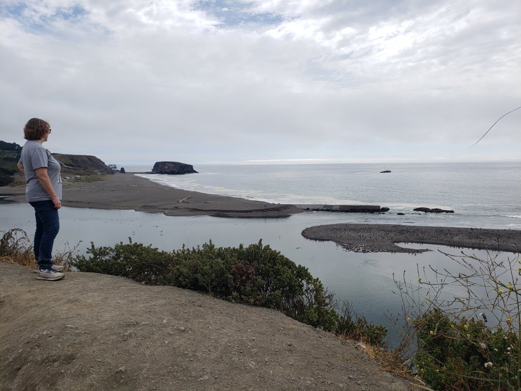 2nd day in Petaluma we drove up to Armstrong Woods State Park. I like it as much or more than Muir Woods. Not as crowded and you can sit at a picnic table and eat or go for a hike along the paths. I am finding out that Loraine likes to hike. So we park and I have a park map. I get oriented and I see the Pool Ridge Trail. The lady said they were all fairly flat trails. So we walk down to the start of it… and we go up a steep trail. Some younger 20 somethings are behind us and even they are stopping a lot. I just start putting one foot in front of the other but I look back and Loraine has stopped. So about every 50 to 100 feet we stop and look around. There is a breath of wind to help cool us. Loraine asks… how much does this go up? Well, probably to the top of the ridge. Why did you pick this one? Because she said they were all mostly flat. The ones marked in yellow are mostly flat! Oh, this one definitely wasn’t marked in yellow! At least we’ll get some good exercise Honey!!! So up we trudged for quite some time. Finally get to the top and a small breath of a breeze is floating by. We stood there a bit to cool off. Thankfully the other side was a lot more gradual in its descent but no wind again and it was around 86. No big redwoods up on the ridge either but as we descended it got a bit cooler and we were able to walk through some bigger redwoods. About this time I told Loraine that I didn’t like hiking but if she liked it I would hike with her. She tells me that even when I was young and in shape that I didn’t like hiking and I would have to agree. Never saw the use for it. Doesn’t do a thing for me. No speed, no motion, sure you get to some neat places but I don’t need to see them if I gotta hike to them. So we walk back on the yellow paths and we get to the car. We leave the park (it’s in Guerneville, California) and head west on 116 to the coast. 116 comes out at Jenner and we went to both headlands. Seals, pelicans and some other sea birds are plentiful. We stood and watched them for a while then went over to the southern headland and walked on the beach. Old Mr Ocean got me too. I was walking on the packed sand paying close attention to the waves so I wouldn’t get my shoes wet… and then some lady asked me a question and I turned to answer… and a wave reached out and got me! A fraction of a second of a distraction and bam. It was the only wave before and after to get that high! Luckily I didn’t melt. We stopped in Bodega Bay and got some food then headed back to her sisters house. We watched a movie each night and they were different than what I normally would watch but they were good.