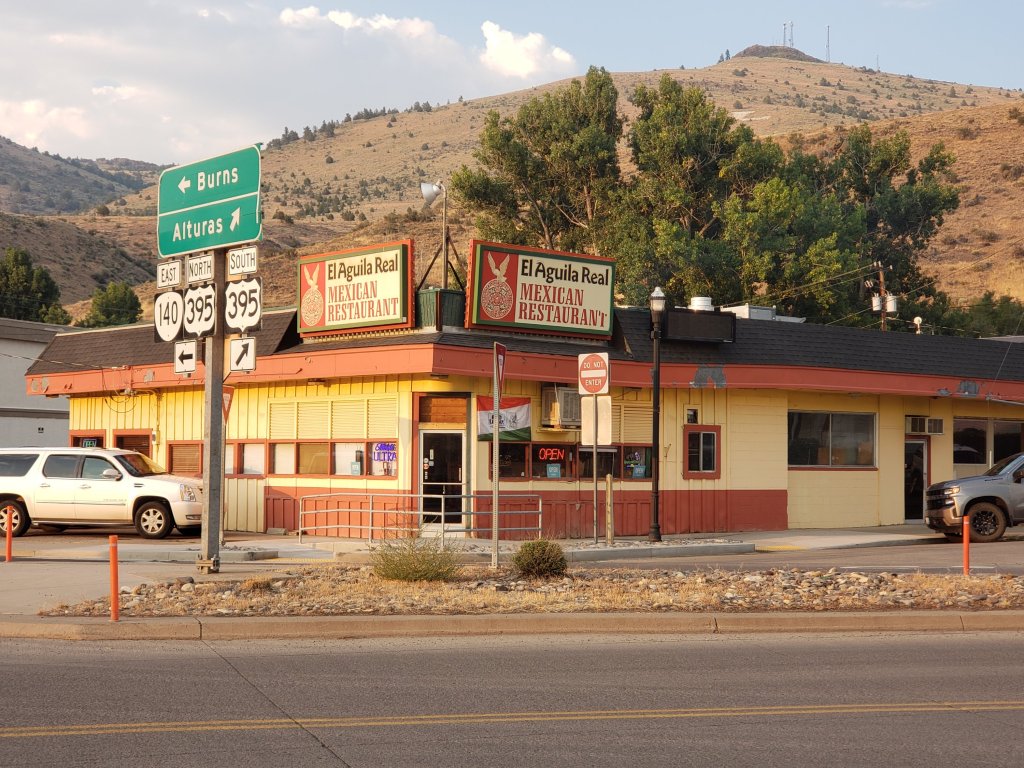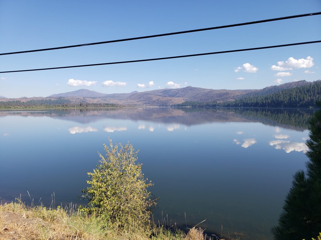 Now while I ate then washed her windows and hydrated my cooling vest that storm was reaching out towards the town I had stopped at so I needed to skedaddle out of there. Soon the temp dropped to 91 and with my vest I was quite comfortable. I had been wanting to get to this part of the country for years just to see what it was like. I was blown away and it was nothing like I had supposed that it was. Mountains with big broad flat valleys in between. It was dry and everything green was irrigated but cattle and hay was the norm. I was totally surprised. I took video of a lot of valleys because they were so big! I stopped in a town named Alturas at NAPA Auto Parts to get some brake cleaner so that I could spray down my front brakes to ensure they keep doing a decent job. Asked about hotels and then the climate. To my surprise they said it gets cold in the winter down to minus 10 and in the hot months of summer lower 90’s to 95. Maybe 3 or 4 days it gets to 100. I was surprised at that. The guy said he was to when he moved there from Chico. Got outside and with the information provided I booked a motel room in Lakeview… but there’s no lake to view… another mystery (Goose Lake is in the distance and it isn’t as big as it shows on Google maps.) It’s clean and comfortable and a total of $93 and the AC works well. I just can’t get the TV to work but that’s no big deal.