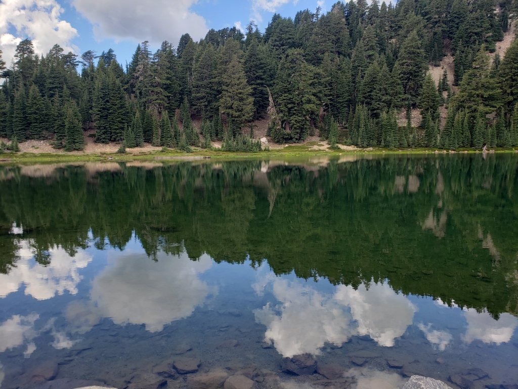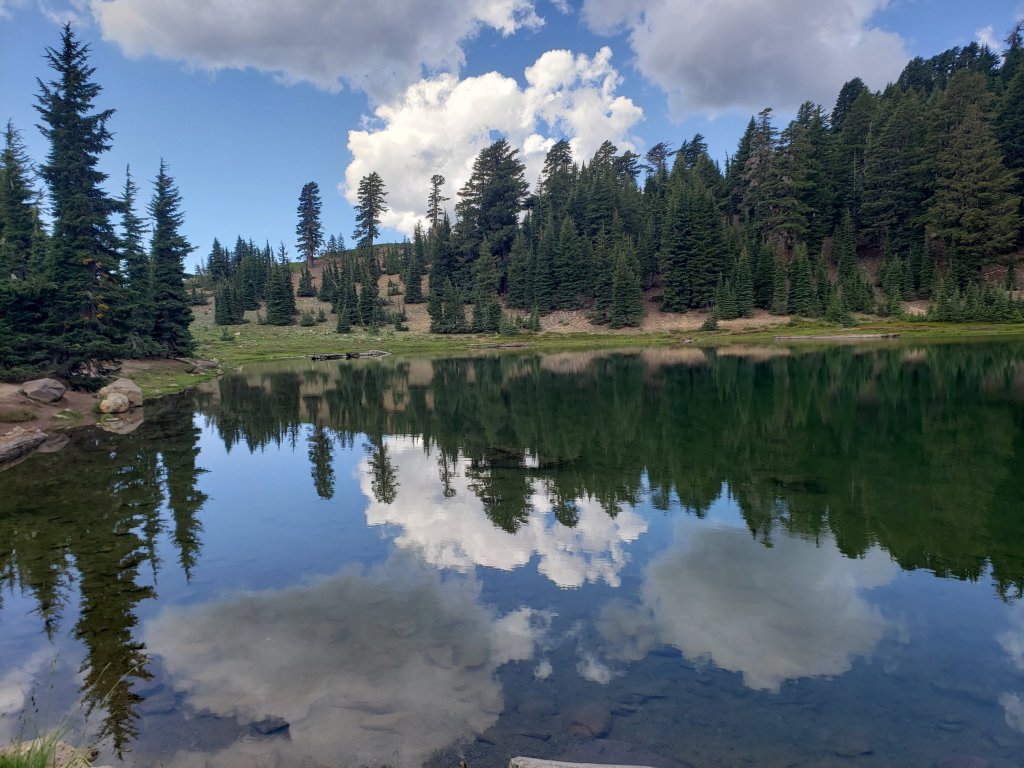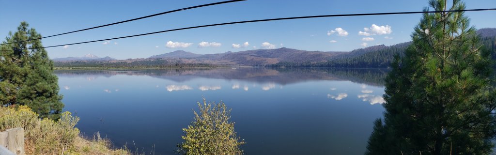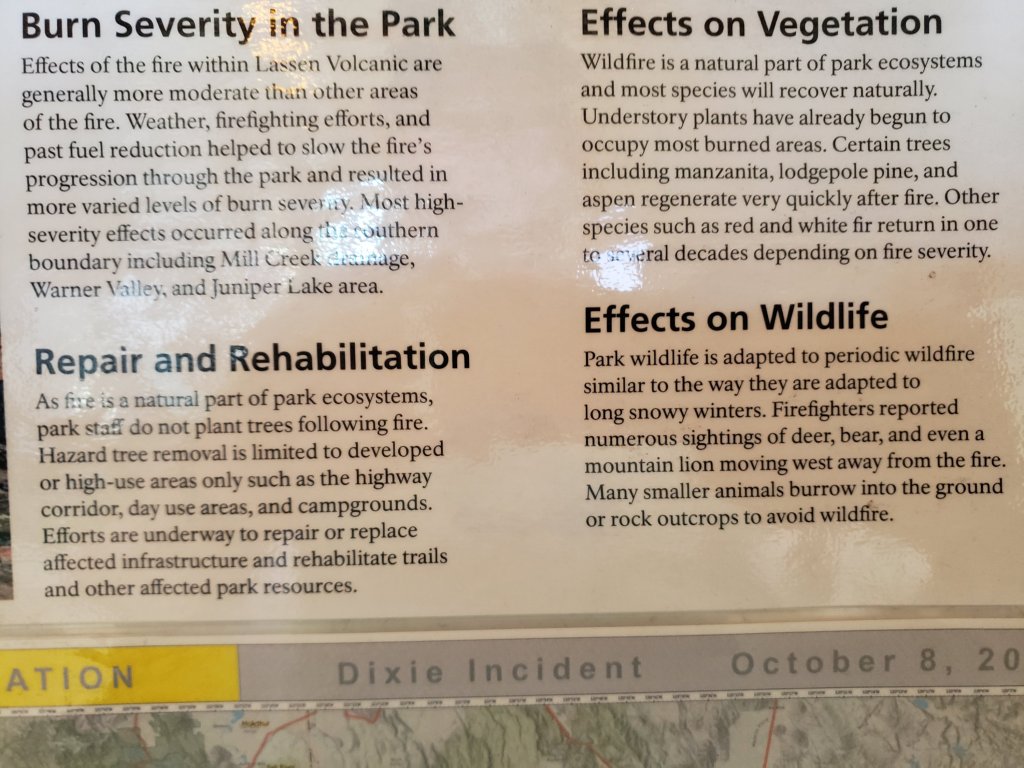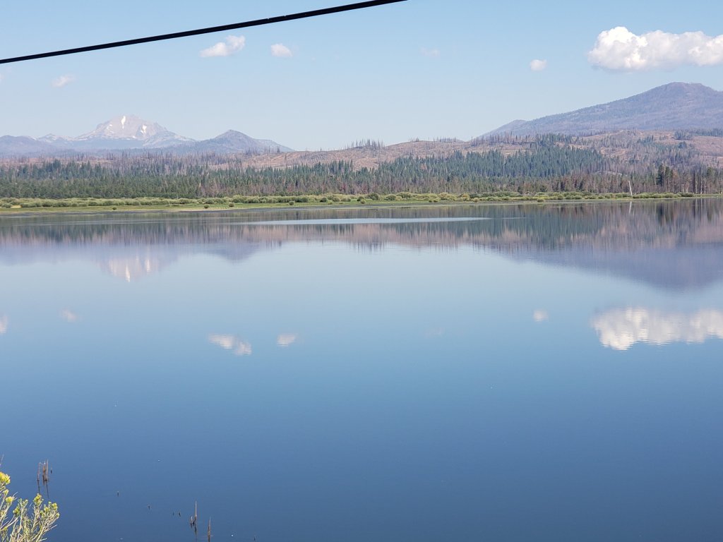 Went west towards Lassens and stopped alongside the road to take some pictures of the big lake. Reflections of the skyline were in it as it was so still. Then wandered along hwy 89 through the burned out areas. I always wondered why they don’t log a burned area as most fires just blacken the tree but have plenty of good wood under the bark. Finally saw them logging a burned area! National Parks leave it as it is Natural. Got up to Lassens and pulled out my Lifetime NP Veteran/Gold Star Family membership card. Thanks President Trump. I think that should have been done decades ago. Walked through the visitor’s Center and then watched a 20 minute movie. Learned Lassens is one of the few places on earth that has all the types of volcanoes that there are in one small area. The only thing it doesn’t have is geysers. Lassens has erupted 3 times. In 1860’s and around 1913 to 1915. Those were big. There is one volcano that has been eroded away over time and there are remnants of it and the remnants are still mountains! The thing must have been ginormous! A beautiful curvy road goes through the park but I was going 20 mph videoing my ride through the park so others can see the beauty too. Saw some clouds bunching up and growing to the East and knew I had to get going or it was going to rain on me. Lots of happy hikers and motorcyclists going to and fro… I continued and came to a sweeping view I had to stop and video while holding still. A car pulled in behind me and through my earplugs and music I hear something. I turn my music off. It was an older gentleman from the car. He just wanted to chat with me as he had seen the bike loaded and dirty along with the GoPro. We had a nice chat as he found out that he and I were both Navy. I wanted to ask him what he did in the Navy on a hill in Nam but the conversation turned and went a different direction. Let’s just say that there are a lot of people in CA that are not happy with the current government. I don’t bring it up either. They do. We had been talking for a while and I finally said… it’s been nice but I have to get out of the park before that builds into a real 🌧 here. He said goodbye and away I went… as I left the gates of the park I had blue sky in front of me but I stopped to do something and I heard a lot of loud crashing and rumblings behind me. I turned around… sure enough it was raining over the big mountains I had just left behind 15 to 20 minutes ago. I had seen several bikes turn around and head back towards the other entrance, people on trails going to the summit of Lassens Peak. All were getting soaked now! I sped off to the NE and the storm continued to grow fast enough that it was right behind me for a while and I even got sprinkled on. Temps had been in the high 70’s all day. It was now around 2 pm and as soon as I got away from the park Temps went to 95. I was getting sleepy due to the heat! Going through nice forests though and when I got to Falls River I pulled in for gas and to figure out how I could get over towards Boise. I wanted to go through the upper corner of Nevada but there wasn’t a clear route. So I settled for going up 299 to 395 into Oregon to US 20 and take that into Boise. If I wanted to I could take US 20 all the way home. It was still 95° out so I pulled my cooling vest out and soaked it down. As I walked back to my bike I noticed that an elderly lady was still there after the cashier had to pump her gas for her. She had been there while I filled up with gas, gone in and bought some ribs and now had finished said ribs. She was trying to wash her windows and as I walked by I noticed that they seemed to be worse off than before she started. I asked her if she needed some help and if I could wash her windows for her. She hesitated as if she didn’t like asking for help.. I went over to her and she handed me the squeegee. I proceeded to do all her windows and lights. She said… you’d think that I would have learned to do this by now. Don’t worry it’s no problem. My hands are arthritic and it is difficult to hold. I said I understand because my grandfather told me long ago… getting old isn’t for sissies! She replied… isn’t that the truth!