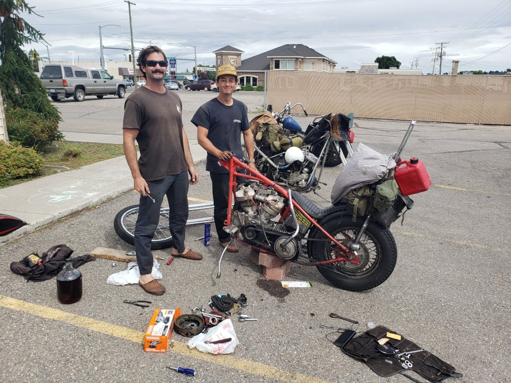 I meet a lot of people while riding. Most are happy people because they are out doing what they want and seeing the country. It doesn’t matter if they are in an RV, 4×4, bicycle, or motorcycle. Yesterday I was coming back from the hardware store and I saw 3 choppers in a hotel parking lot. One of them was in pieces so I decided to stop and see if they needed a few more tools as I am carrying a few. So with that decision made I turned around. Asked them if they needed anything. No, but thanks. The guy had the front off of his bike and was filing on the piece that goes into the goose neck. Putting in new head bearings? No, just making a few adjustments so it turns better. Oh… I find out these guys have been out on the road almost as long as I have been. They all have 1 gallon gas cans strapped on their bikes. What’s your range? About 110 to 120 miles. Wow, out west that has to be a major concern. Yeah, we have to plan our route around gas stations. Come to find out they started out on the East coast and went up into New England. I said I’d been there and found out it was expensive up there. One of them said… I know! I spent most of my money up there! Everything was expensive! I see a sticker about Iraqi War Veterans. Are you guys Veterans? Yes. Do you have your National Park Veterans Pass? We sure do! Great. We continue to talk and they tell me thst they built these choppers themselves. They say that they are really simple to work on as it is all old school and no electronics… not even a starter. They build them.. Wyatt said he built his in his living room as he didn’t have a garage. You must not be married then… No, I’m not. He says with a laugh. They get a certain satisfaction out of the fact that they build them and then go ride them across the country. I can understand that. I said goodbye and then one of them came and shook my hand as he found out that I was Navy… he had spent time on a ship watching sailors do there jobs while he was being transported somewhere. I asked him his name. Wyatt! Really? I have a son named Wyatt. Cool… See you guys. Have fun… as they were planning on going to the West coast in Washington or Oregon. They hadn’t figured out which one yet.