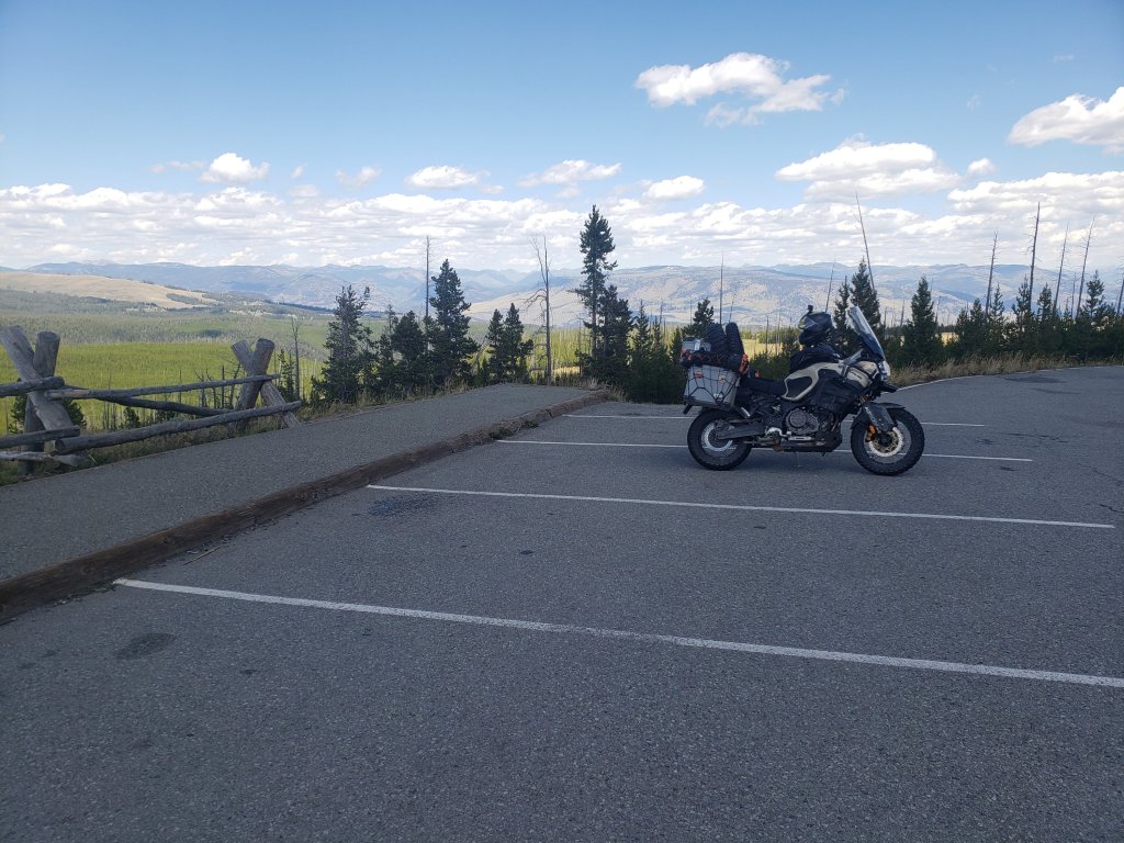 After that I was headed for Chief Joseph Hwy and Cody. I had never taken 212 out of the park before. Big mistake as I think it is one of the prettier drives. Mountains on either side and some big vista’s too. I had seen one bull Bison somewhat close and besides ducks a few birds and grasshoppers that was it so far. Going down 212 and I got into one of those long valleys and that’s where a lot of Buffalo are. I got some close up video from my helmet mounted Gopro… as close as I wanted to get anyway! Then I started on the Bear Tooth Hwy at the exit of the park and it was great but I turned onto the Chief Joseph Hwy (296?) and it did not disappoint at all. Great curves and enough straighter sections to enjoy the views too. I’ll be going back up it for 62 miles to get back on The Bear Tooth Pass and hwy. I’ll stop and take more pics. I just wanted to get into Cody WY before it got to far into dusk. There were black beef cows along the road and I sure didn’t want to meet one of those up close. During the day I hadn’t eaten anything until around 1 pm. I ate a cup of unshelled salted pistachios while I looked over a vast valley filled with pine trees… so I wanted to get to Cody to eat. I saw a person wearing a Bubba’s BBQ T-shirt at Tower Falls and I asked if it was any good. Yes, we went there twice. Ok, so I went. It was ok. The ribs were tough. You had to really pull to split a rib off. I ended up cutting them and chewing them a lot. I wouldn’t waste my time there. The young waiter asked how everything was… I looked at him and said. The ribs were tough. He shrugged and said. I’m sorry. I then asked. Do you have a veterans discount? Yes, we do. Made it a little better but I won’t recommend you eat there. At least not the ribs. All in all it was a good day. I saw a lot of pretty country. I also got stopped by construction but never had to wait to long. I was on the section where the river had damaged the road when it flooded in the spring.